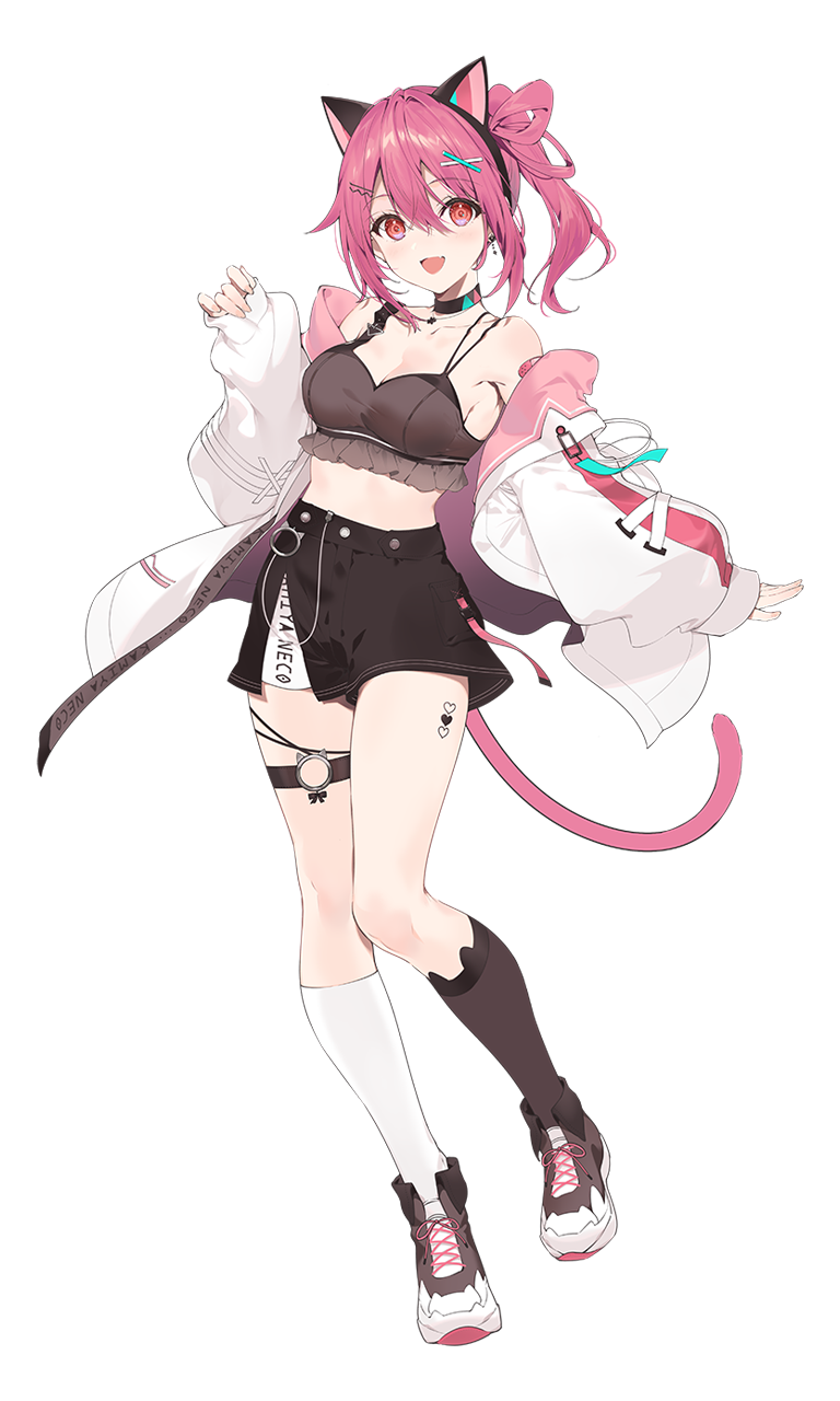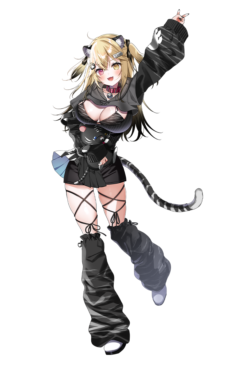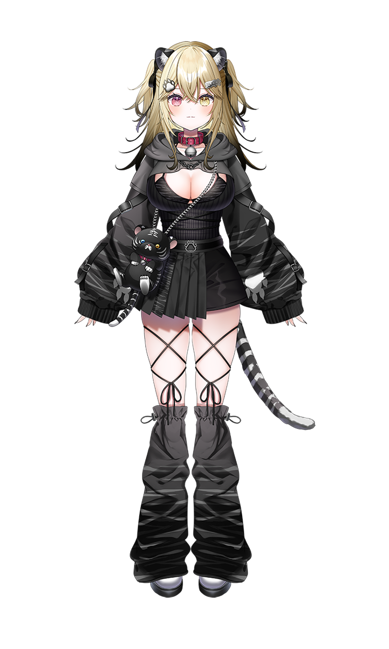 見た目は派手でちょっとエッチなゲームが大好きな女の子。配信やSNSで危ない発言しがち/// 内面は人見知りだけど虎のように仲間思いで、優しい一面も!! 好きな食べ物はクッキー